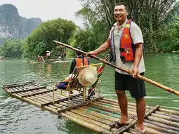 Also, when the bamboo raft turns down with the current, the water will squeeze onto the bamboo raft and you have to lift your feet. It is quite exciting. You must not miss it when you come to Yangshuo. I highly recommend it 👍