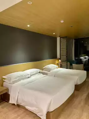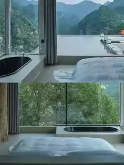 The hotel is a combination of traditional northern Guangxi architecture and modern simplicity, with white walls and black tiles, full of charm. The room has panoramic floor-to-ceiling windows that bring the Yangshuo landscape into the room, and the view is breathtaking.