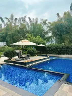 The courtyard is exquisite, with lush flowers and plants, and water features. Swimming in the outdoor pool feels like being immersed in the landscape. The service is very attentive, with a butler on call to arrange everything.