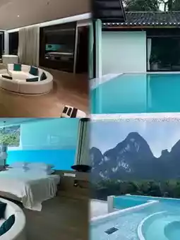 Awesome👍My boyfriend took me to live in a painting. I loved the infinity pool with mountain views on the top floor of the hotel. The coffee house next to it was very romantic, facing the large lawn and karst peaks. There were fruits, restaurant snacks and unlimited coffee in the public area, which was very comfortable.