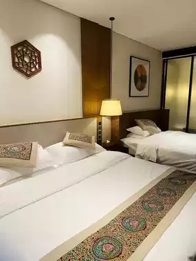 Step into the hotel and be greeted by the classic charm of Eastern culture. Carved wooden windows cast dappled shadows, while furniture crafted with traditional mortise and tenon joints exudes a simple elegance. Ink paintings adorn the walls, and porcelain antiques grace the tables, creating a rich cultural atmosphere that envelops you.
