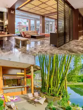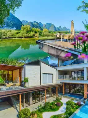 Yuepan Shenjing Resort Hotel (Yangshuo Lijiang Branch) is located on the banks of the Lijiang River in Yangshuo. With the design concept of "Secluded Landscape, Poetic Residence", it skillfully integrates modern architectural language with the natural scenery of the Lijiang River.