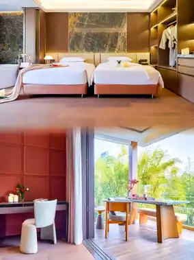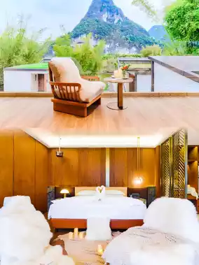 The rooms are equipped with high-quality bedding, smart home systems, and a private viewing balcony or terrace. In the morning, you can breathe in the fresh air on the balcony and admire the misty landscape of the Li River. At night, you can fall asleep to the sound of running water and twinkling stars.