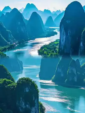 1️⃣ Li River aerial photography + "Blue and White Porcelain" BGM