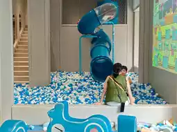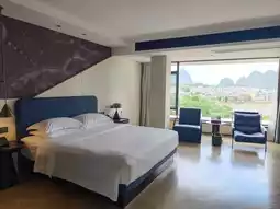 Stepping into the hotel feels like passing through a time portal🚪 A unique interstellar ambiance is woven from sci-fi elements and artistic design. The outdoor pool shimmers, reflecting the blue sky and white clouds🌊 Nearby, a whimsical children's playground🎠 ensures families can find joy here too. Pushing open the door to the mountain-view suite with a bathtub, the view takes your breath away! The lazy sofa by the floor-to-ceiling window faces the rolling karst mountains⛰️ When mist swirls around, it feels like stepping into a fairyland~ The room is cozy and immaculate, with soft, delicately scented bedding that shows attention to detail🥰 Sinking into the latex pillow guarantees a restful night's sleep, leaving you refreshed💤