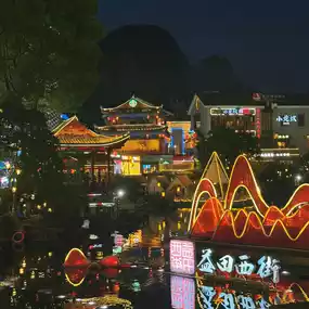 West Street is located in the center of Yangshuo County, and it is very convenient for food, accommodation and transportation. There are bars, restaurants and coffee shops of various styles in West Street. There are relatively few tourists during the day and it is relatively quiet. It gradually becomes lively in the evening. At night, the lights are on, the night view is beautiful, and the streets are crowded with pedestrians.
