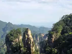 - Zhangjiajie's majestic mountains loom over us like gigantic sculptures.