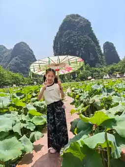 We stopped at a lotus garden by the roadside (5 yuan per person), which provided oil-paper umbrellas as photo props and allowed kids to catch crayfish—they loved it! The lotus flowers were in full bloom, perfect for photos, though the scorching sun was unbearable 🙅♀️!