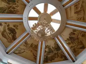 The lobby's ceiling is particularly eye-catching, featuring a patchwork of Guilin landscape paintings. It not only exudes a Chinese style, but also perfectly captures the beauty of Guilin.