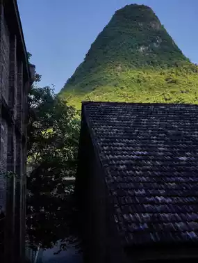 In the early autumn at Yangshuo Sugar House, the greenery has yet to fade. Instead, under the clear skies, it appears even more lush and tranquil. Sunlight filters through the layers of leaves, scattering delicate patches of light, as if nature has quietly arranged a gentle ceremony. A soft breeze brushes by, carrying a hint of coolness, but it doesn't disturb; it merely sways the branches slightly, as if even time hesitates to rush.