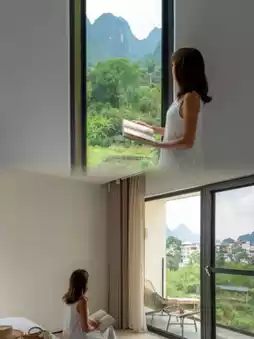 The hotel is tucked inside the Ten-Mile Gallery scenic area, and when you open the window, you see the Karst peaks⛰ Whether standing on the balcony or sitting in the courtyard, every shot looks like a landscape painting! In the early morning, you can hear the babbling water and birdsong; at dusk, watch the sunset glow spread over the village, and even the air carries the fresh scent of earth. All the city worries instantly disappear~ After rain, clouds and mist float among the mountains, it really feels like living in a fairyland!