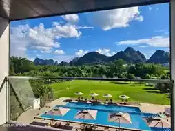 This fall, I traveled to Yangshuo with my children and was looking for a family-friendly destination where we could truly enjoy the natural beauty. We chose Yuyuan Jingshe, and it was a truly remarkable choice. The hotel is located right on the Yulong River, offering sweeping mountain views and lush greenery from both the room and the garden. You can even watch bamboo rafts drift by, creating a tranquil environment perfect for a family getaway.