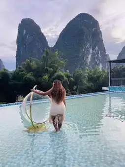 Thanks to the hotel’s chill location, you’re just a short walk (like, minutes!) from the iconic Li River photo-op with the man and his birds 🦩📸. Bamboo rafting is also only 8 minutes away—definitely a must-do for those dreamy river views! Plus, if you wanna chase mountain views, the scenic deck is stupid close, making sunset missions super easy.