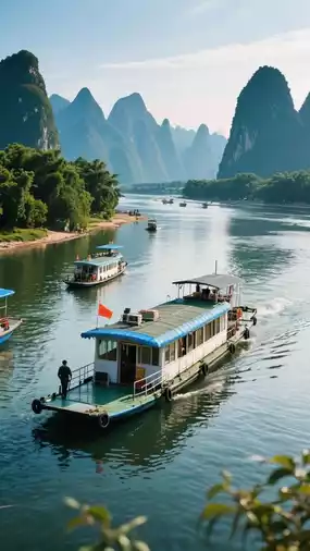 📍D2: Take the bus to Seven Star Park, student ticket half price 17 RMB, in the afternoon take a boat to "hitch a ride" on the essence section of the Li River — take the Guilin → Yangshuo ferry (operated by local fishermen, ticket 30 RMB/person, not a tourist boat but the scenery is just as beautiful!)