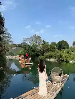 A hidden gem that needs no filters! The reflection of Fuli Bridge and the green mountains blend perfectly, as if stepping into a traditional Chinese ink painting 🌿 Free to visit and capture breathtaking bamboo raft photos!