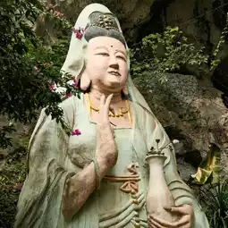 While wandering through the winding paths of Yangshuo, I stumbled upon something unexpected — a hidden Buddha statue, quietly resting among the trees and moss-covered rocks. There were no signs or crowds, just the sound of birds and the faint rustle of leaves in the wind.