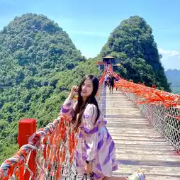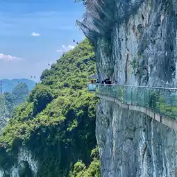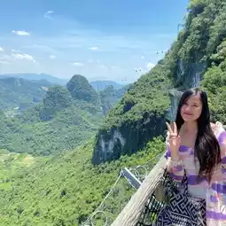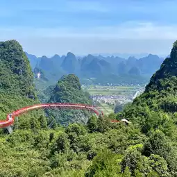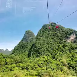The view is breathtakingly beautiful! Overlooking the mountains of Yangshuo while inside the cable car is worth a ride! The ropeway goes up to the mountain, then walk for about 2.5 hours. There's a net bridge which I find it very bright. The glass plank road is too short I think. They might consider people who are afraid of heights. And you need to add extra 5 yuan for the shoe cover 😅. The attraction itself is very large, there are many roads to walk, and the mountains look very distinctive.