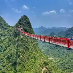 Ruyi Peak is a must-visit for those wishing to conquer their fear of heights. Towering above Yangshuo, overlooking the shadows of hundreds of mountain peaks in the distance. The cable car is a short ride to the top with magnificent views of the landscape and agriculture of the town. A long rope bridge takes you to the next peak and many, many stairs to climb to a large circular platform from which you can enjoy 360 degree views, as far as the eyes can see. This scenic spot also offers a glass bridge and a glass platform that wraps around the mountain like a necklace (¥5 for shoe covers. keep your receipt to use for both areas). The whole trip should take between and 1-2 hours at a leisurely pace if it’s not busy. You do not need a guide. It’s easy enough to take a cab and buy a ticket yourself (There is a group discount). #summervacation #yangshuo #guilin #ruyipeak