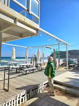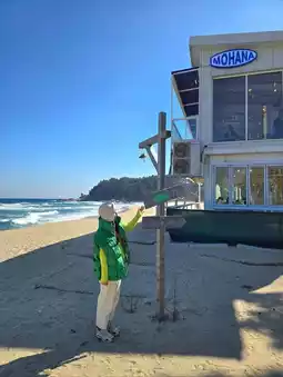 Wow, look at the color of the sea! Can you believe this is in Korea? The sea sparkled like a jewel, the waves crashed endlessly, and the beautifully designed resort-like photo spots were everywhere! It's hard to believe this is Yangyang. There's even a surfing school here, making it an even more exciting place to visit in the summer. Highly recommended! 💜