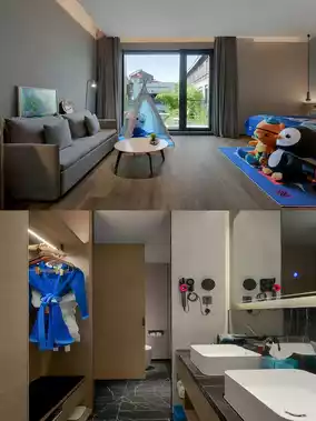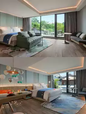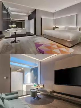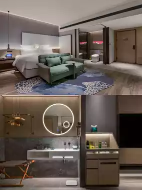 The hotel is situated in a treasure location adjacent to the Slim West Lake, within the strong core business district of Hongqiao Square. The hotel is located on the north side of Dahongqiao Road and the west side of Slim West Lake Road, only 900 meters walk to the bustling Wenchang Pavilion business district. The hotel's location is very convenient for must-visit attractions of Slim West Lake such as Xuyuan, Four Bridges Misty Building, Xiaojin Mountain, and Wuting Bridge, and it is opposite to the spring willows of the 24 scenes across the bank. Staying here, immersed in the cultural narrative of the six dynasties' famous place, you can shed the hustle and bustle of the city and enjoy the beauty of life in the flower room. The hotel also specially creates a unique cultural experience, from the flower room tea room to the poetic study, different moods, different travel needs, can follow the pace of the flower room culture, to find their own happy way, to taste the beautiful memories of every moment here. The poetic naming of the guest rooms is also inspired by the most famous 24 bridges of Slim West Lake, and the idea is to show the elegant name of the room type and scenery. Whether you choose the 'Star Gazing' room with a glass skylight, where you can enjoy a private bath while looking up at the stars, the 'Lake Cloud' scenic room where you can watch the colorful clouds reflected on the lake surface from the terrace, or the 'Sunset' room where you can overlook the sunset on the lake, all allow guests to fully relax and experience the elegant charm of the green lake. In terms of room design, a deliberately created transparent open space, large floor-to-ceiling windows bring warm sunlight into the room, interpreting the comfort in Yangzhou's exquisite slow life.