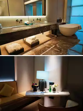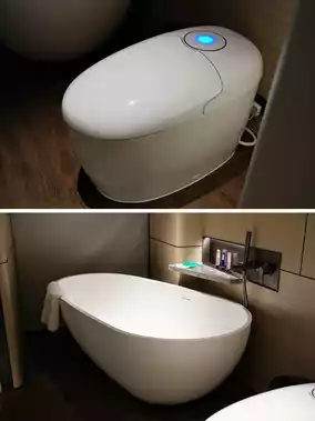 The rooms are also very cozy and fully automated. You can use voice commands to control various appliances such as air conditioning, curtains, and lights. The toilet is also intelligent, automatically opening, flushing, and closing as you approach, which is very convenient.