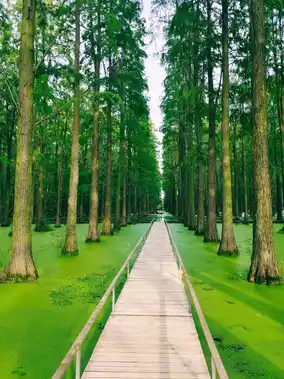 🌳 LuYang Lake Wetland Park in northern Yangzhou boasts unique green landscapes, featuring towering metasequoia trees and verdant algae. Take a boat 🛶 to admire the scenery or stroll along the boardwalk 🚶🏻♀️ to embrace nature's charm.
