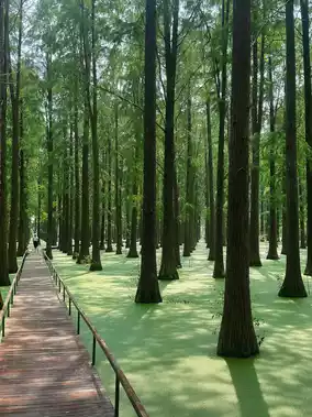 · Boat Tour: Rent a wooden boat (50 RMB/boat, seats 2-4 people, about 40 minutes), row on the matcha-colored lake, weaving through the dawn redwood forest, and feel the charm of the green wilderness.