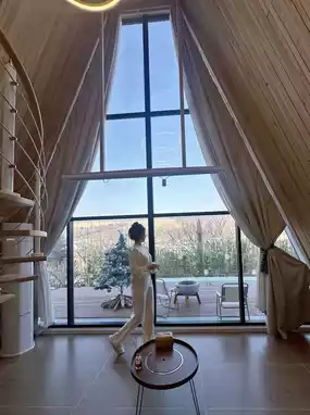 ·One day was in the small triangle 'Mountain Mist', with a 1.8*2 meter bed, large triangle windows, a projector, and a Starbucks capsule coffee machine~