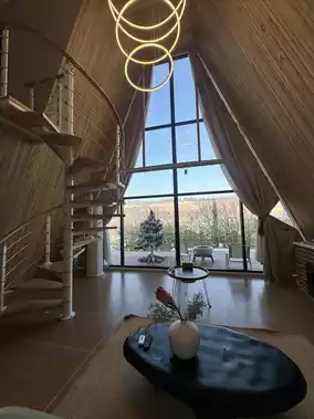 ·The second day was in the large triangle wooden house villa 'Starry Sky', two floors, upstairs is a 1.8m*2m bed, downstairs is a 1.8*2m sofa bed~ You can also watch a movie on the projector✌🏻