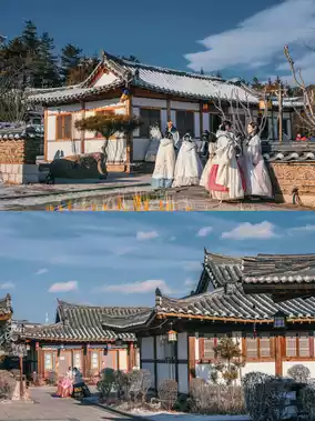 Most people come here to take photos in Korean costumes. There are many internet-famous spots and artificial snow, which are very photogenic.