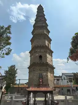 Yangling Xingguo Temple Pagoda was built in the first year of Xiande during the Later Zhou of the Five Dynasties (954 AD). This pagoda is a hexagonal nine-story hollow pavilion-style brick tower, consisting of three parts: the base, the body, and the finial. It stands about 27 meters tall, with a circumference of about 18 meters at the base. The outer bricks are polished and relatively uniform. The base is hexagonal with a waist-like shape. The body of the pagoda gradually narrows with each ascending level. The top is built with overlapping bricks forming a four-cornered pointed roof, topped with an iron gourd-shaped finial. Each level has eaves, under which large brick interlocking and corner brickwork are constructed, along with brick rafters and flying rafters. Above the eaves, there are inverted overlapping brick layers, and close to the pagoda wall, brick decorations shaped like mountain flowers and banana leaves are built. Historically, the Xingguo Temple Pagoda played the role of a feng shui tower to revitalize local culture, functioning to gather water and energy and to suppress water and evil spirits, making it an important cultural landmark locally. At the same time, the pagoda’s construction highlights the advanced ancient techniques in tower load-bearing performance and overall structural strength. This pagoda is one of the few well-preserved Song Dynasty brick pagodas in the Central Plains region and holds significant reference value for studying the development of Song Dynasty architecture and the spread of Buddhist culture. It is a nationally protected key cultural relic.