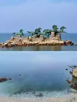The iconic sculpture of seven galloping horses is very spectacular, and the straight wooden plank road leads to the sea pavilion, where you can enjoy the sea view and feel the whisper of the sea breeze.