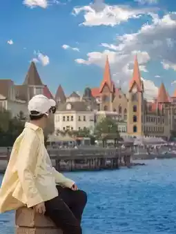 The azure waters and European-style architecture make you feel like you’re in Europe. At *Mofei Café* by the wharf, pair fluffy desserts with signature drinks while watching seagulls skim the waves—pure bliss.