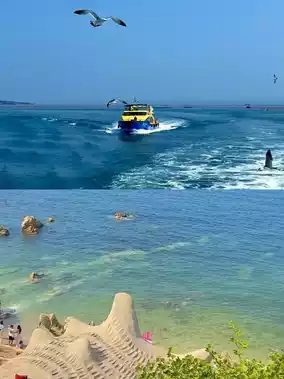 - Experience: Speedboat surfing (50 RMB), pick up transparent little crabs on the beach
