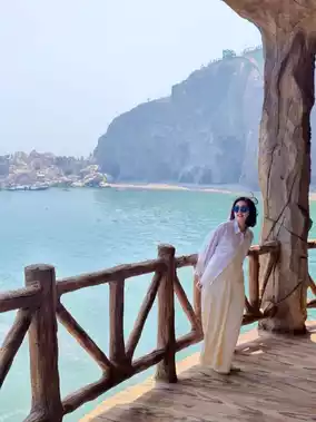 How to get there: 👉 After visiting the main pavilion of Penglai Pavilion → 🚠 Take the cable car to Lao Beishan → Exit the station and walk up the stairs → 🌁 Viewing platform → Go down the stairs on the left → 🪨 Baxian Reef → Continue down on the left → General's Rock → 🛖 Huixian Cave → Walkway ⛩