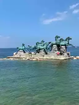 - Seven galloping horse sculptures symbolizing the history of Yangma Island, stunning for photos at sunset.