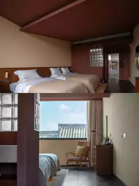 ▫️The homestay offers 14 elegant rooms, blending scenic views with a warm ambiance. The wooden tones of Oriental aesthetics meet modern minimalist design, providing a cozy retreat for families to escape the hustle and bustle 🛁.