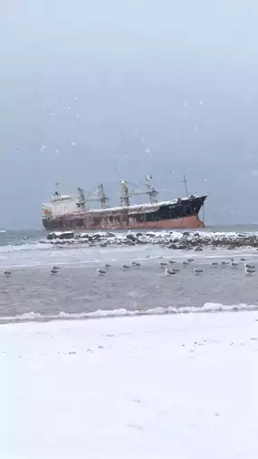 - Snow-covered shipwreck with a full cinematic vibe🎬
