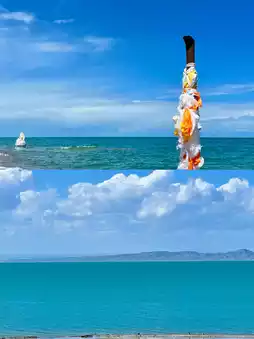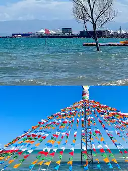After arriving at the peninsula, there were activities like yak riding and ATV rides. If you want to ride a yak for photos, it’s better to walk further in, where the price drops from 30 yuan to 10 yuan. The peninsula is very large, with soft sand that makes walking tiring. The scenery is quite similar throughout, so no need to walk the entire area—go as far as you can. For the return trip, we chose a small train, but the scenery was average; it would have been better to take the bus back hahaha (photos 1-5).