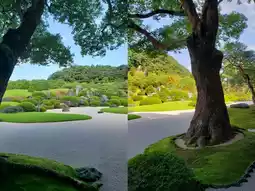 2️⃣ The White Sand and Green Pine Garden: Based on Yokoyama Taikan's painting "White Sand and Green Pine," the combination of white sand and pine trees makes you feel like you've stepped into the painting.