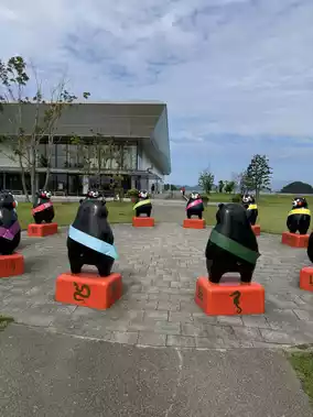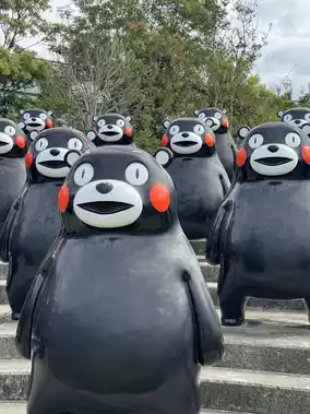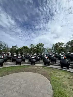 Additionally, there are 12 Kumamon figures forming a circle representing the zodiac animals. You can encounter various Kumamon figures with different sizes, expressions, and poses.