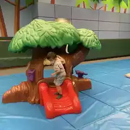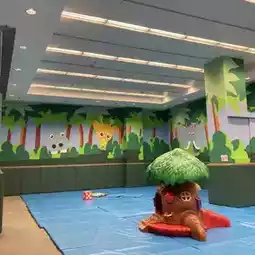 The children's playroom is forest 🌴 themed, with a small tree house 🌳 specially designed for toddlers 👶🏻, with some simple buttons 🔘 inside the tree, and different exploration devices and small slides 🛝 outside.