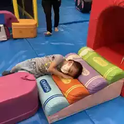 45 minutes passed quickly, my mother was caught up to the point of exhaustion, extremely fast discharge⚡️, very happy🤩. The only thing to note is that the soft cushion is laid on one piece, the joint is not seamless, when my mother ran to catch the piggy bank, the corner of the soft cushion squeezed several times, we have to be extra careful when playing 😊