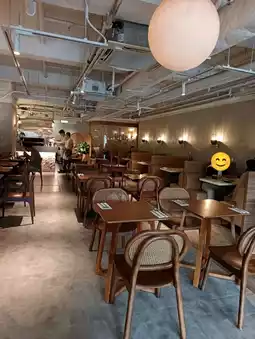 The restaurant is located on Austin Road in Tsim Sha Tsui, with wooden tables and chairs placed at the entrance. The interior is mainly decorated with wood tones, creating a spacious and comfortable, leisurely atmosphere.