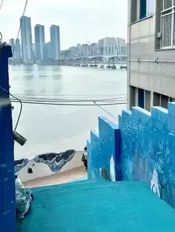 There are stairs on the side of the coastal promenade below the Baiqiantan Cultural Village that lead to the coastal promenade. The super beautiful coastal level, with a colorful promenade, is a great choice for checking in 📸🌊