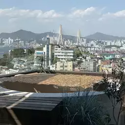 You can take in the entire view of Yeongdo, with a distant glimpse of the Busan Harbor Bridge! The accommodation is located on a higher ground, offering an impressive view of densely packed houses in the alleys and an unobstructed, open scenery (*˘◡˘*)