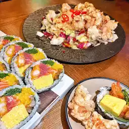 And you all thought it was Yurin-ki, right? But it was ponzu karaage! 🍗 The sauce was so delicious, and the fries were so crispy, I couldn't stop reaching for them. Paired with futomaki, it was a truly wonderful combination!