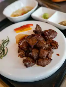 The beef ribs are generously sized, and the aroma of beef is palatable upon arrival. The staff even torches them tableside to bring out the richness. A dip in the sour sauce cuts the greasiness, or in mustard sauce is also delicious. 👍🏻