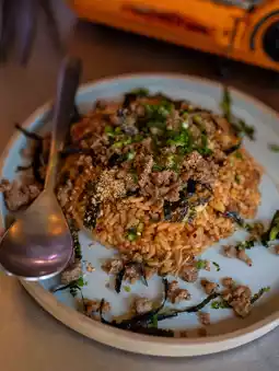 This bibimbap is a must-order. The crispy seaweed and slightly spicy rice are so delicious that you can't stop eating. The aroma of chopped green onions really elevates the flavor, and the portion is generous!