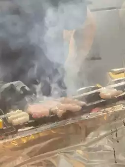 The chicken skewers are infused with a subtle charcoal aroma,